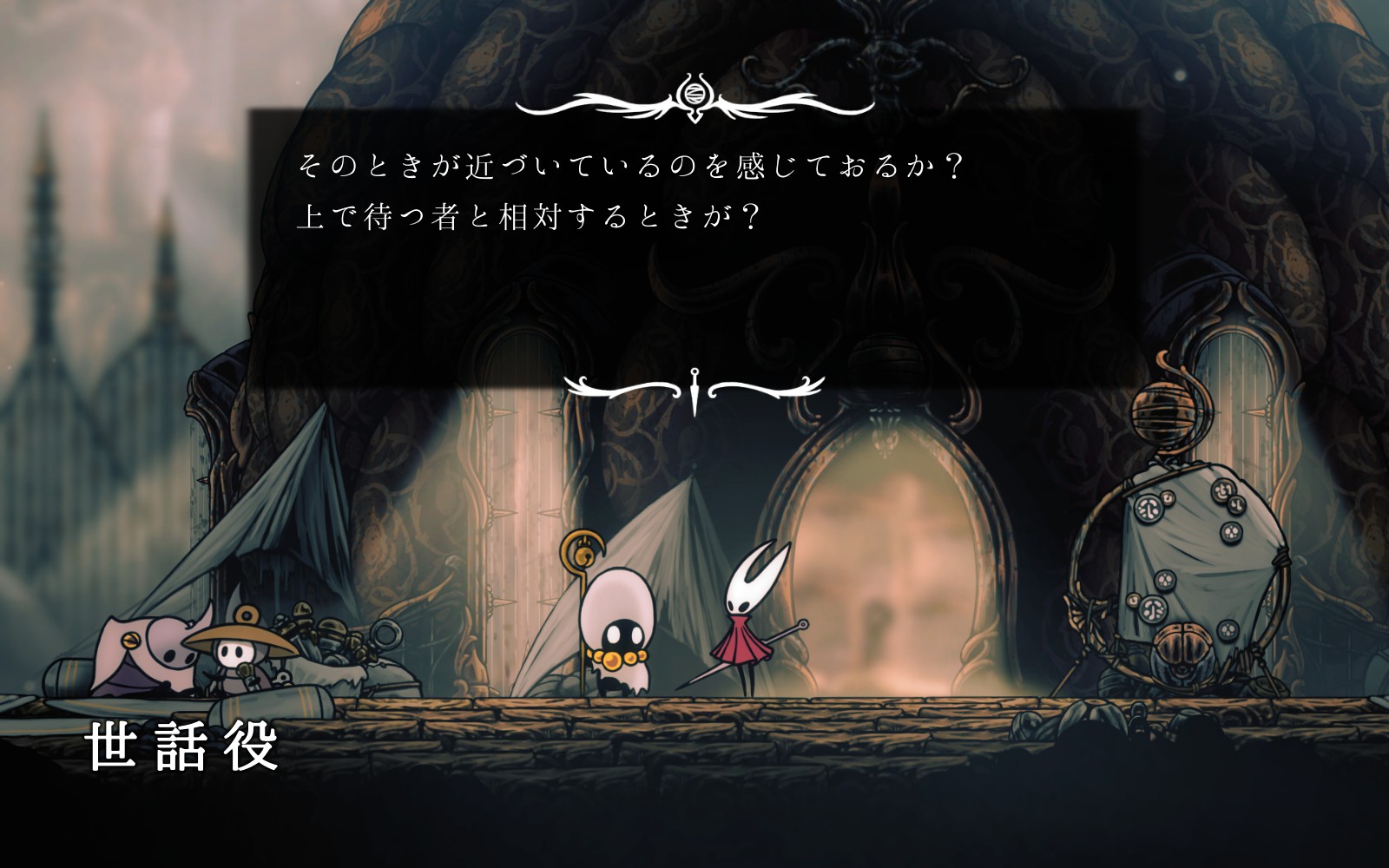 タスク:シルクとソウルをクリア後に揺り籠に行き、上に登っていくと途中で世話役との会話が発生。