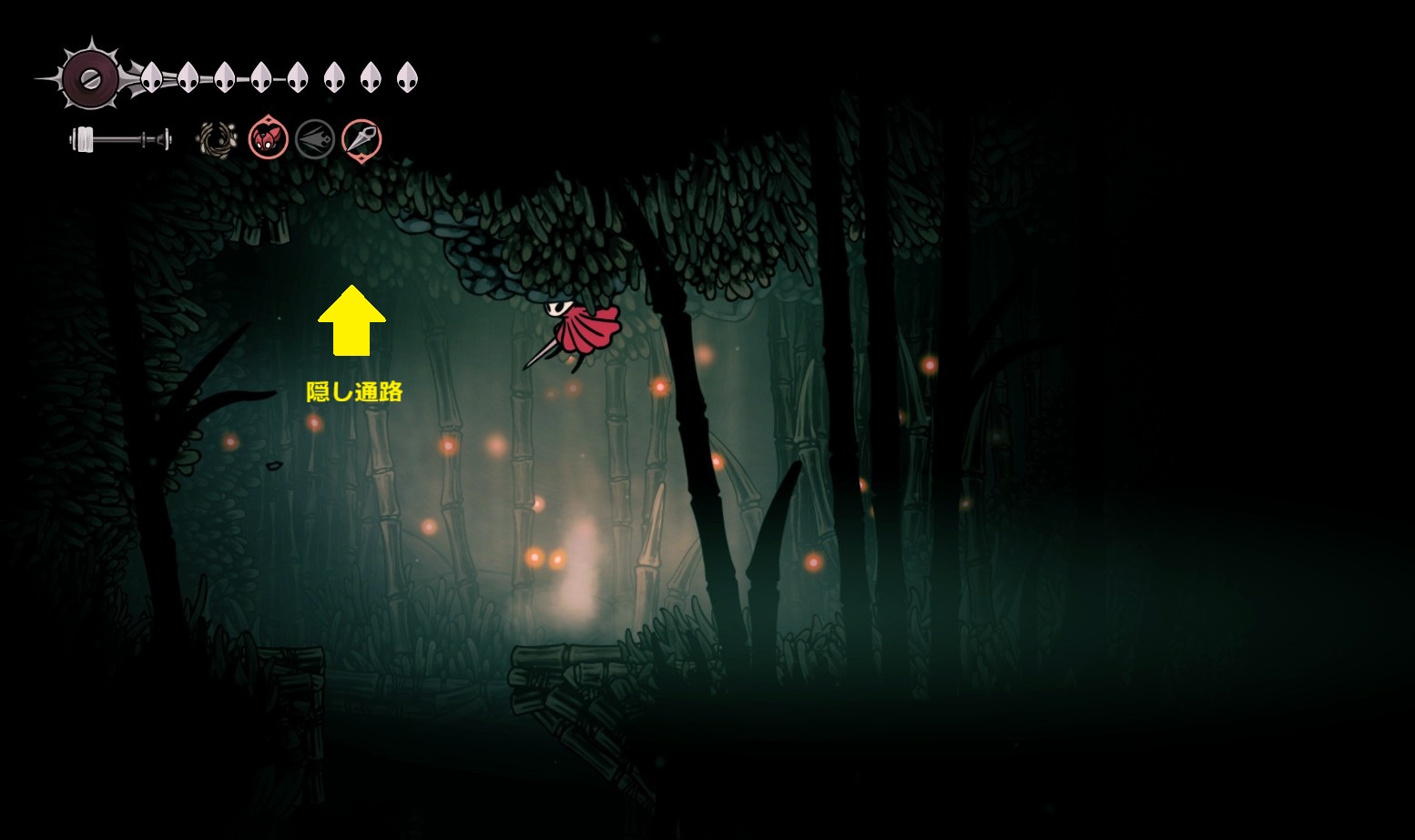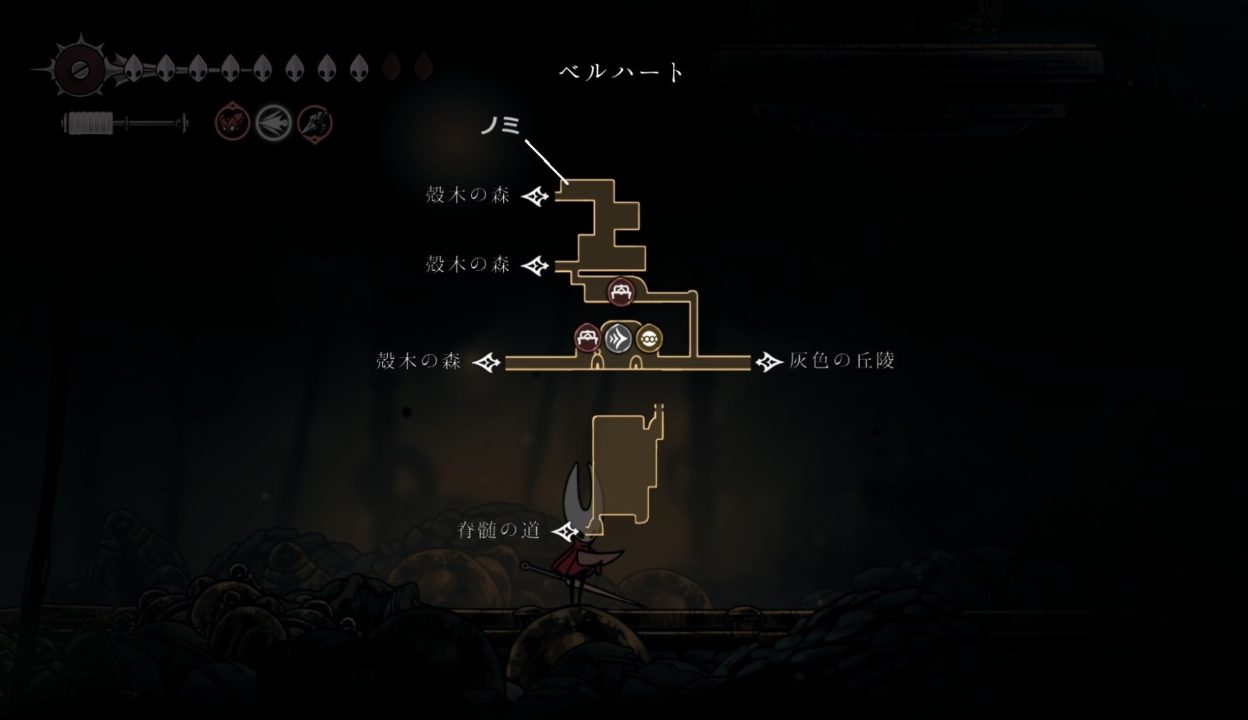 ウィスプの茂みには、灰色の丘陵の隠し通路を通った先から行ける。(要:空中ジャンプ)