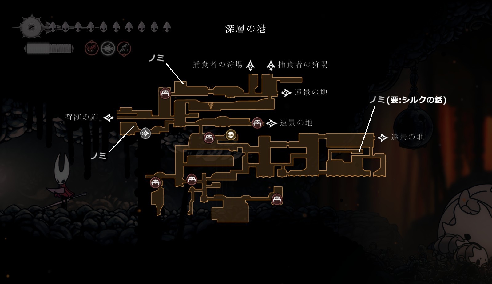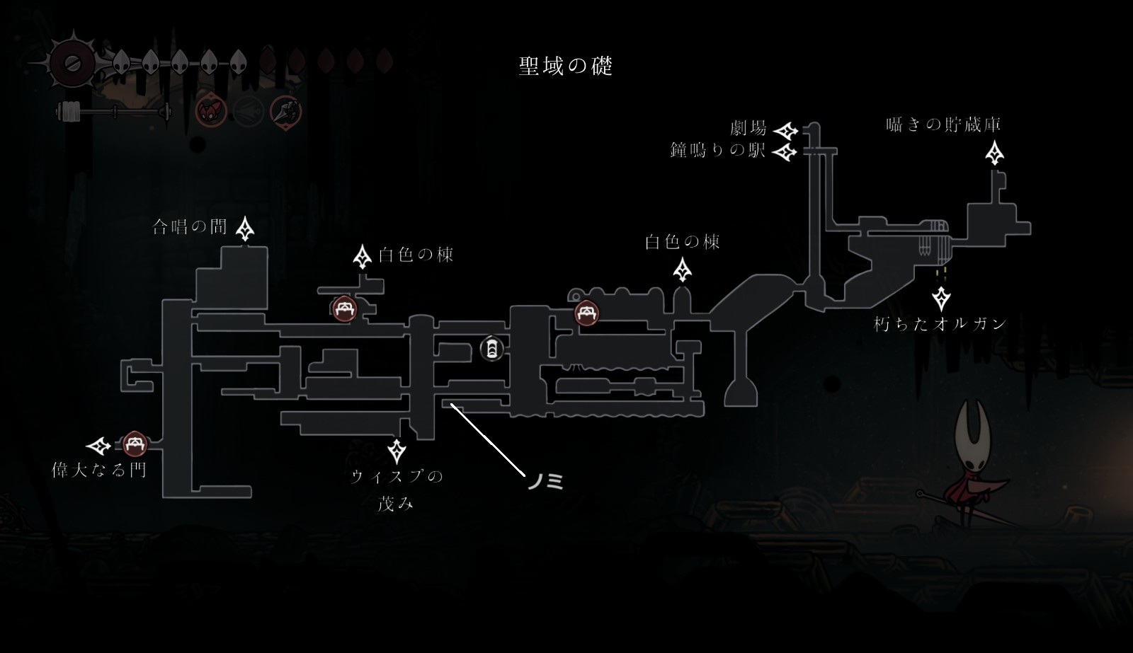 『Hollow Knight: Silksong(ホロウナイト:シルクソング)』ノミ(全30匹)の場所の一覧。
