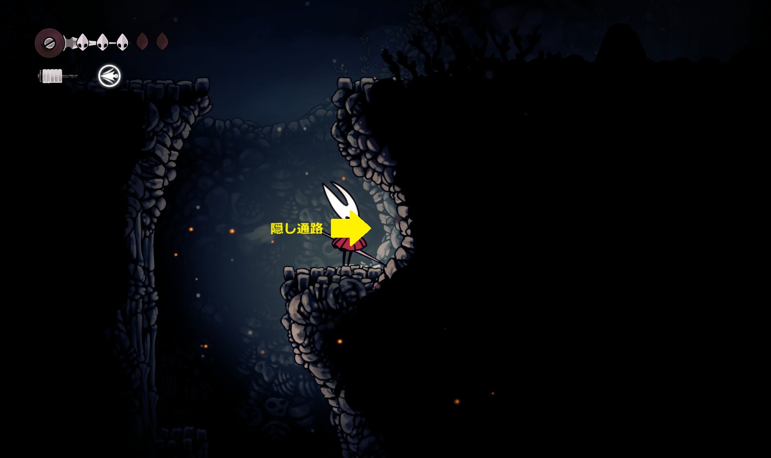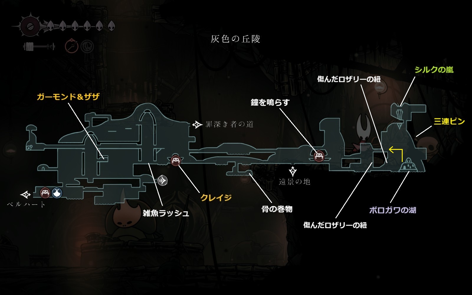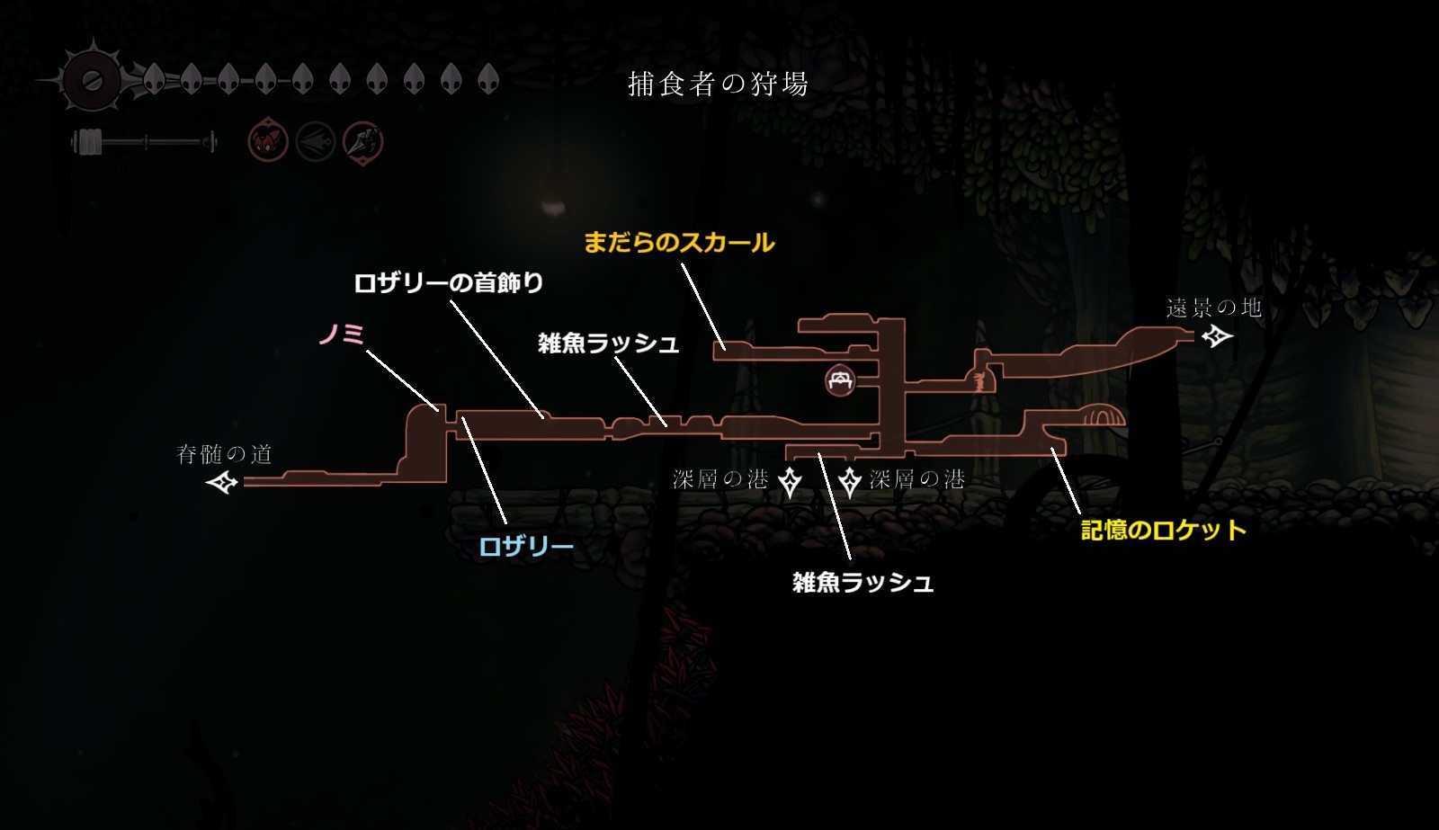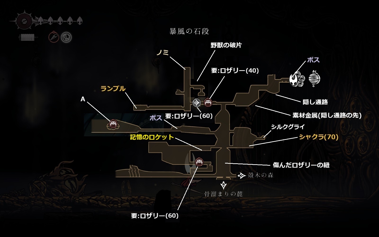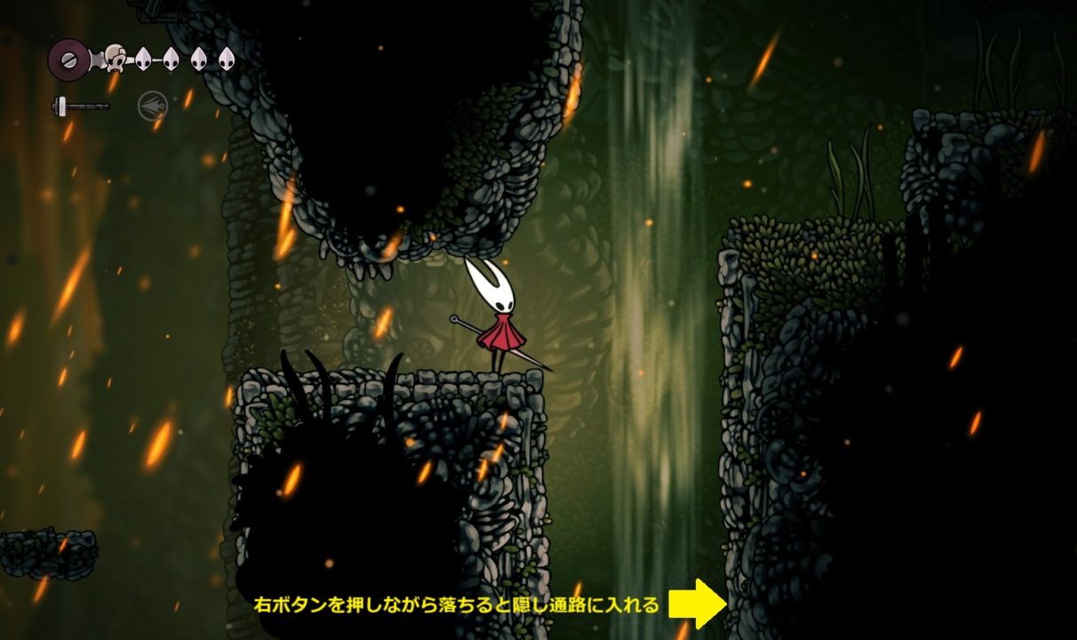 ※仮面の破片や糸巻の破片は無視(もし地中の穴、囁きの貯蔵庫、ペブの店の仮面の破片を入手してライフ7を目指すなら取りにいく)