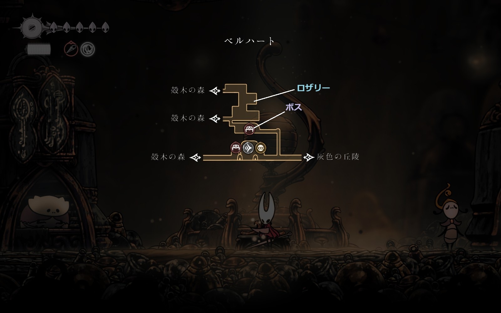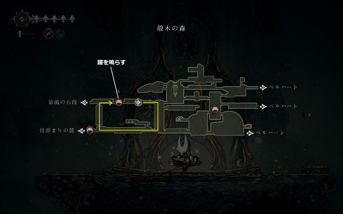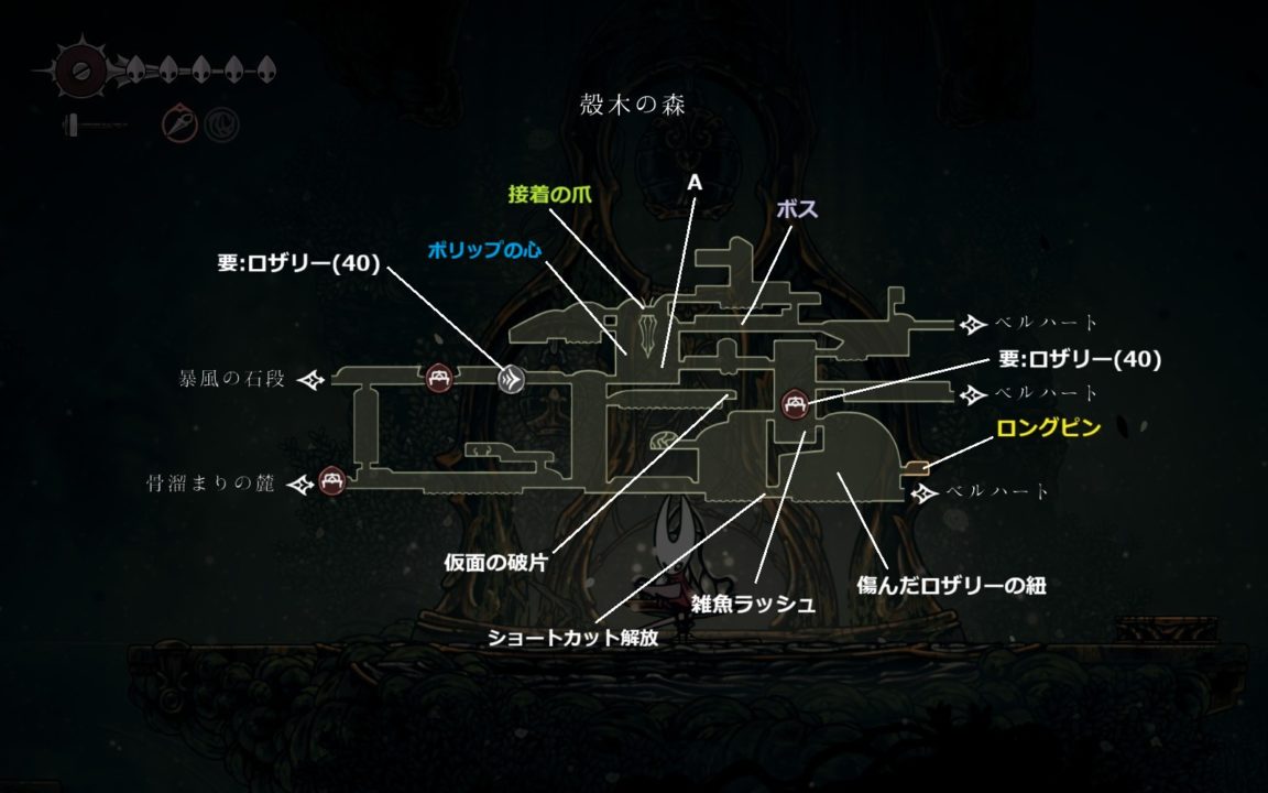 ボスと戦う前に左の壁を破壊した先から殻木の森に入ってベンチへのショートカットを解放しておいた方が安全。