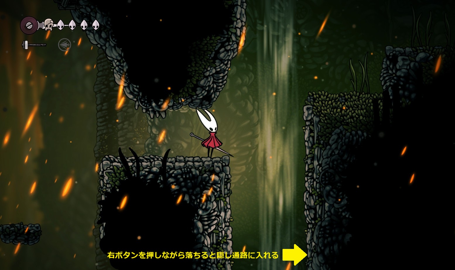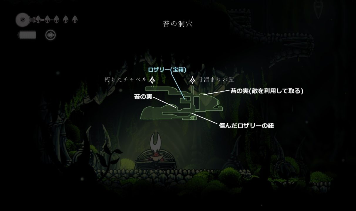 その後、下の方を飛んでいる苔の実を持った敵を上手く倒して落ちながら苔の実を入手。(時間が掛かってもいい)