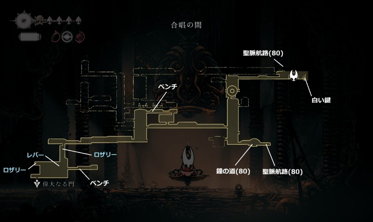 途中のロザリーを入手後に、上のエリアで左の壁を破壊して合唱者への指令を入手。