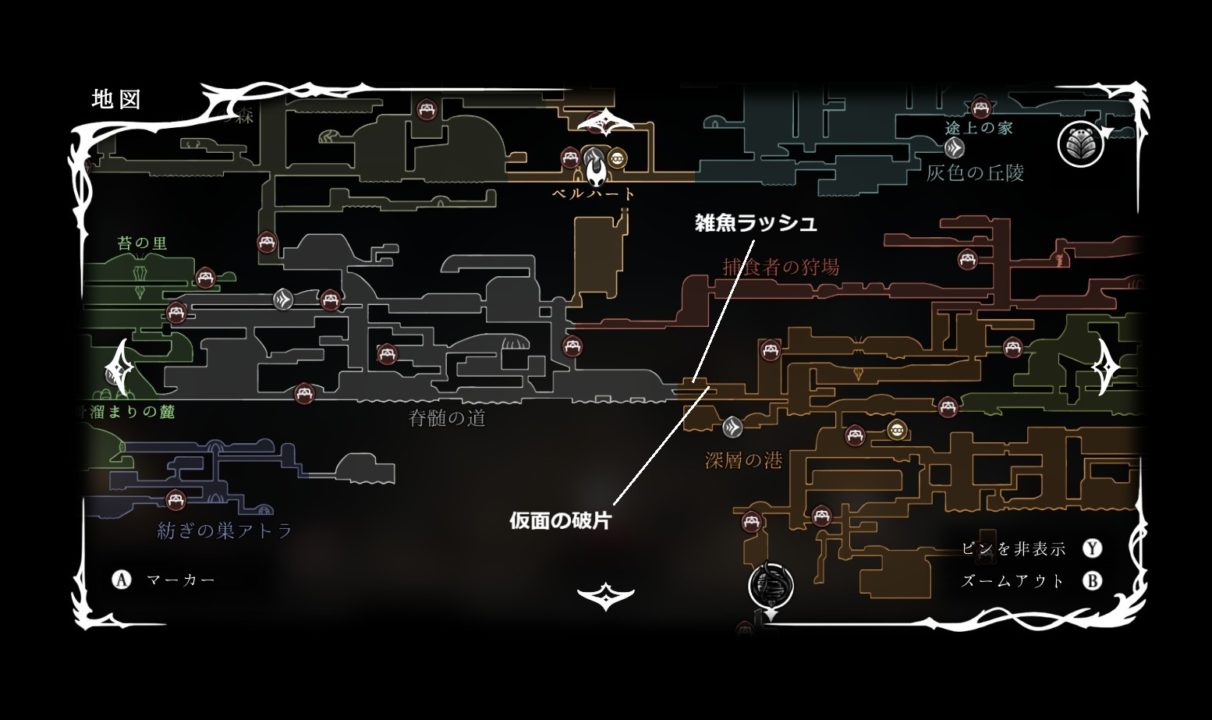 接着の爪を利用して、深層の港の仮面の破片を回収する。(脊椎の道か深層の港の鐘の道から)
