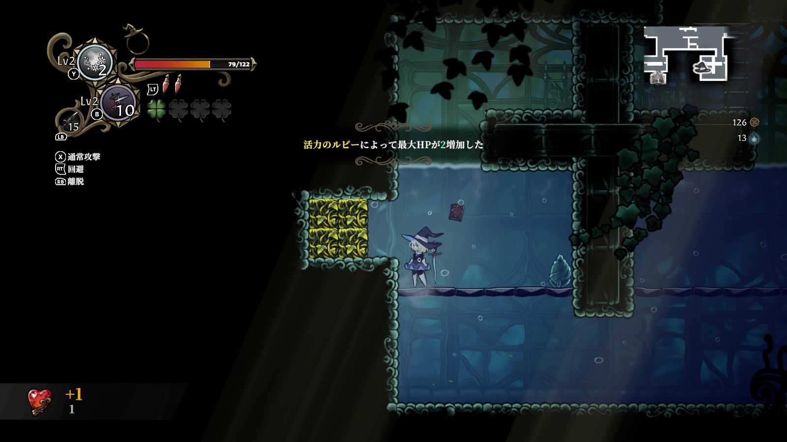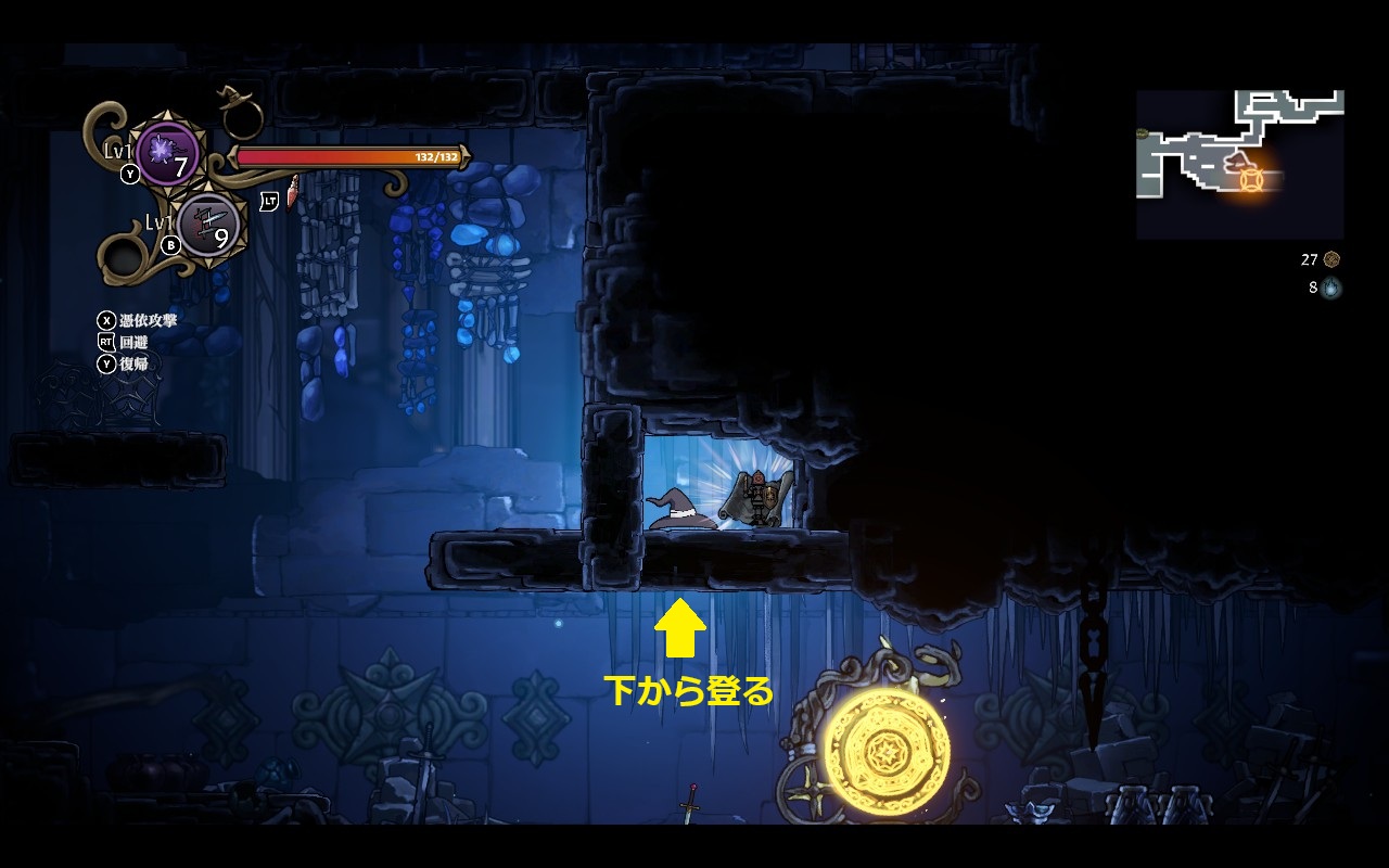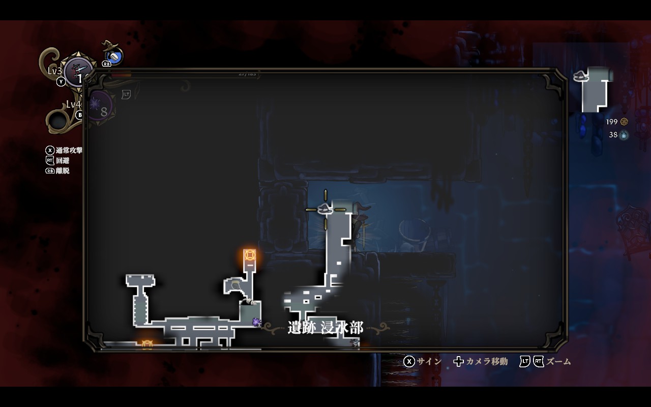 神獣の羽を取得後、(別の冒険時に)1層のトゲで囲まれた場所の奥へ空中ダッシュを使って進むと「遺跡 浸水部」に行ける。