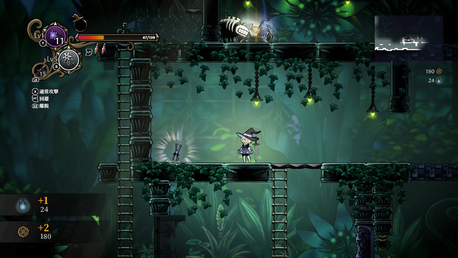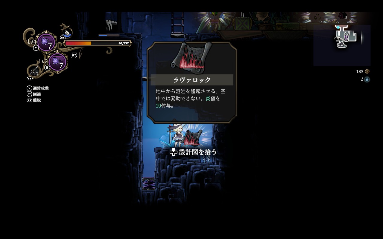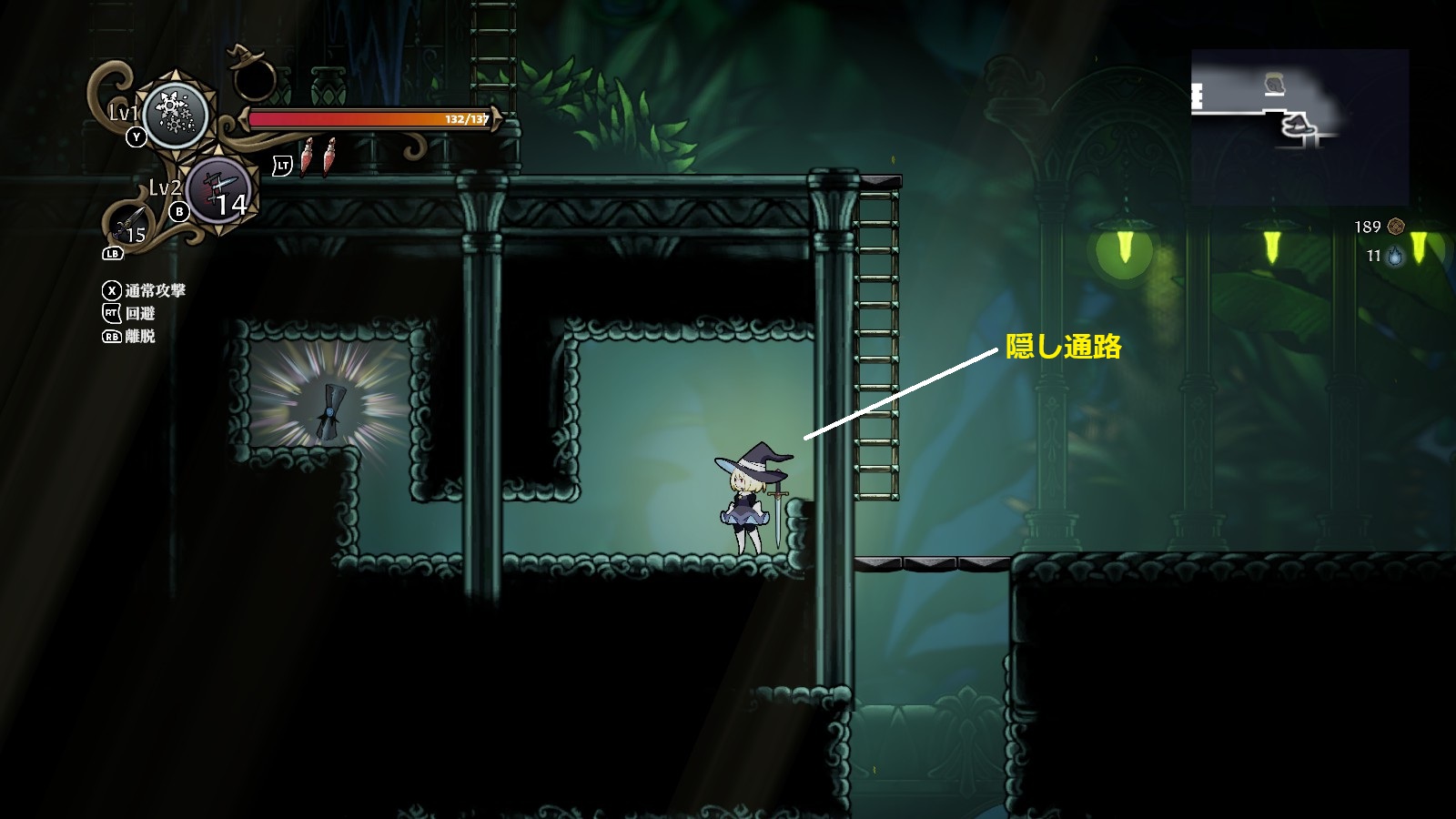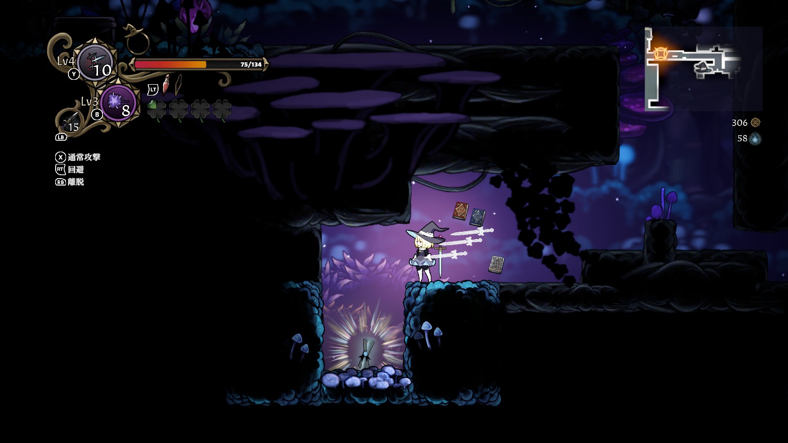 離脱して帽子状態になった際は、魔女の肉体を呼び戻すボタンと最後に憑依した魔物を呼び戻すボタンの2種類ある。