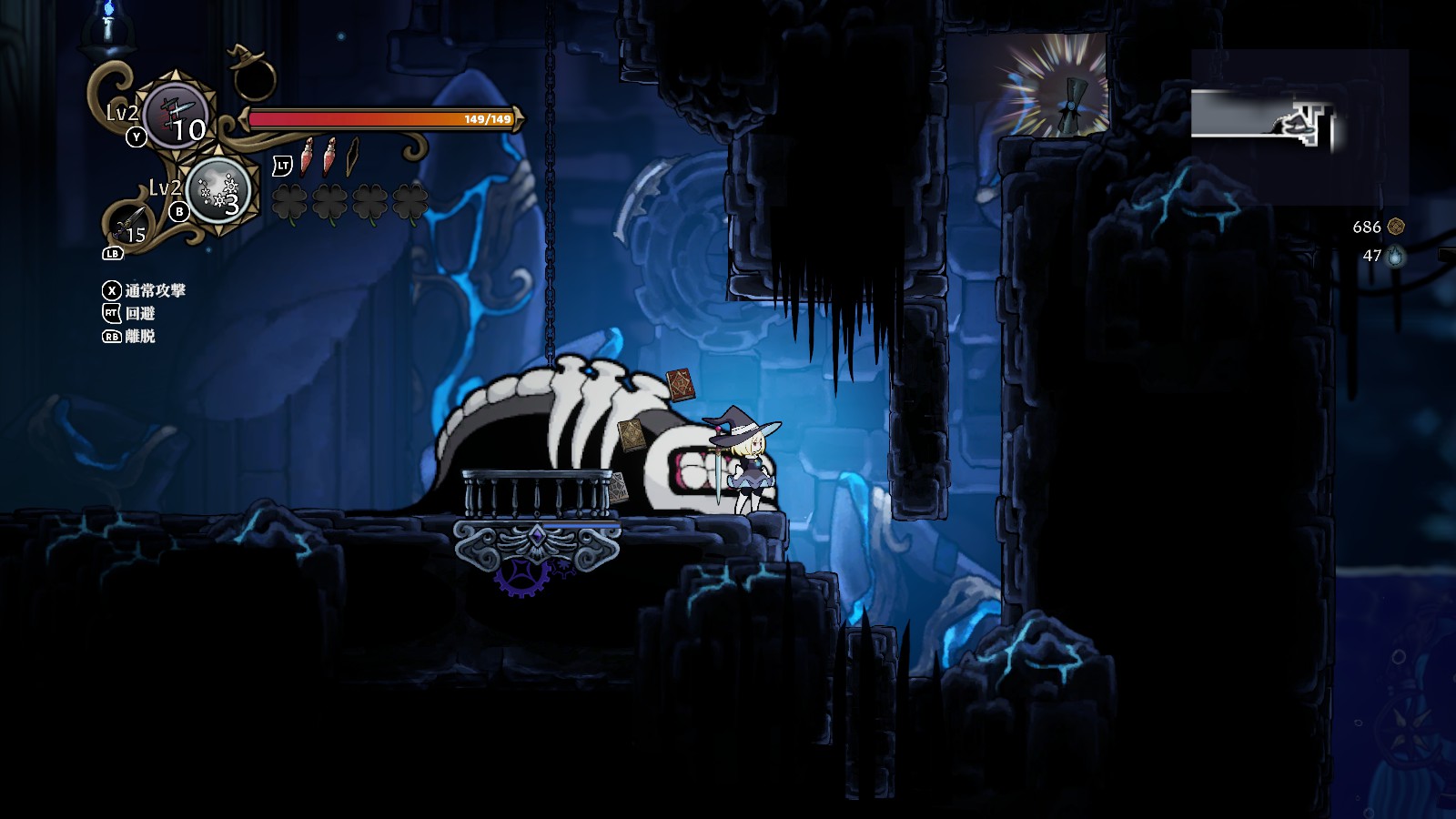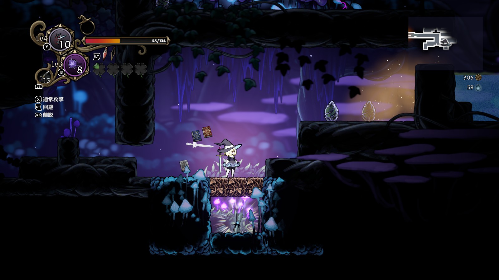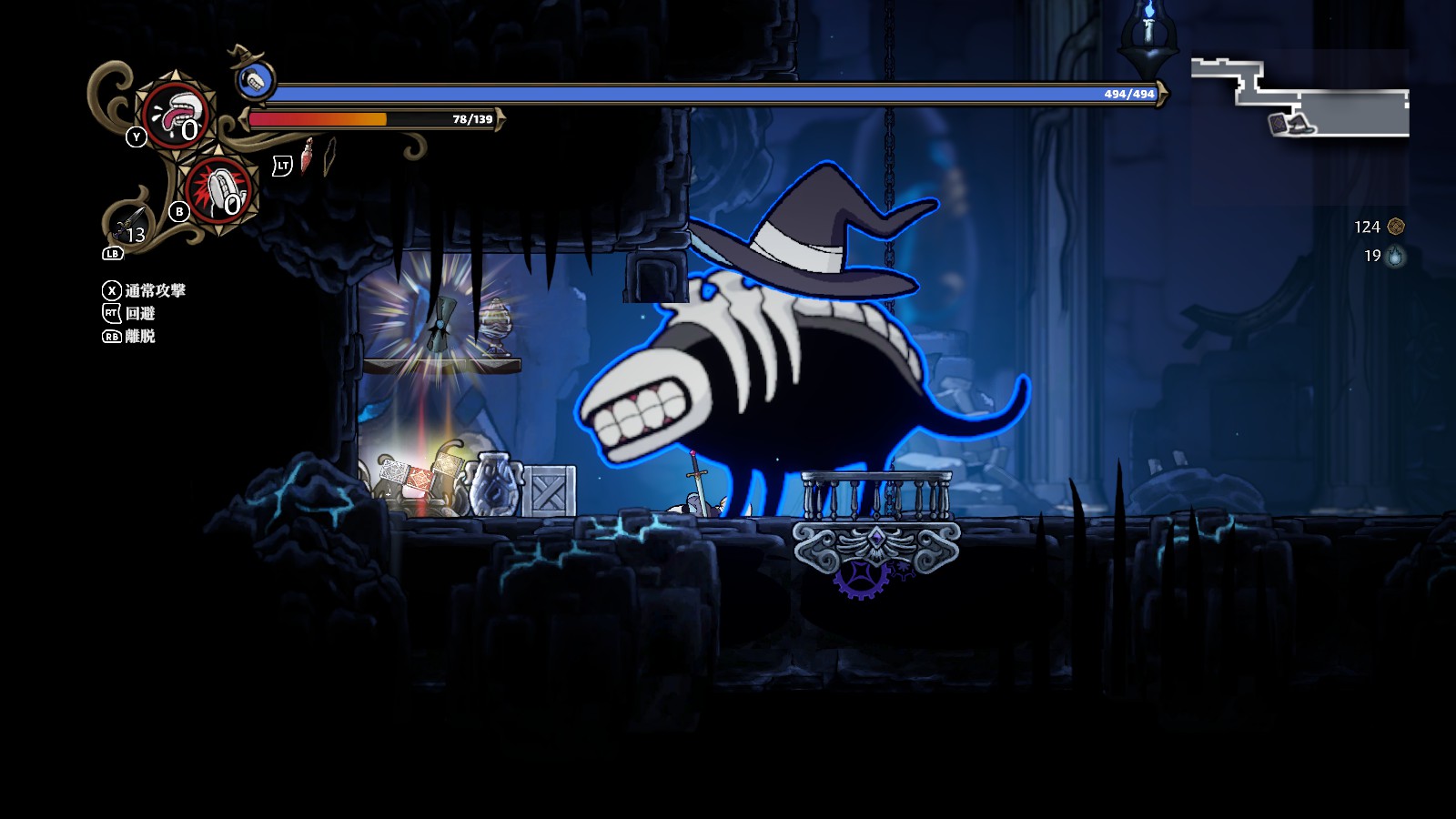 離脱して帽子状態になった際は、魔女の肉体を呼び戻すボタンと最後に憑依した魔物を呼び戻すボタンの2種類ある。