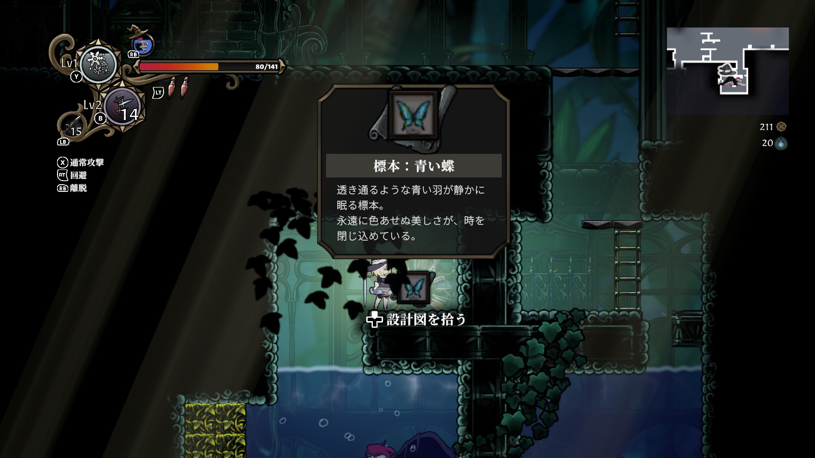 | 遺跡 浸水部 | スプリンクラー ※植物園のアーティファクト「クモの置物」が必要 | 巨大な犬の敵に憑依して壁を破壊して登った先![]() |