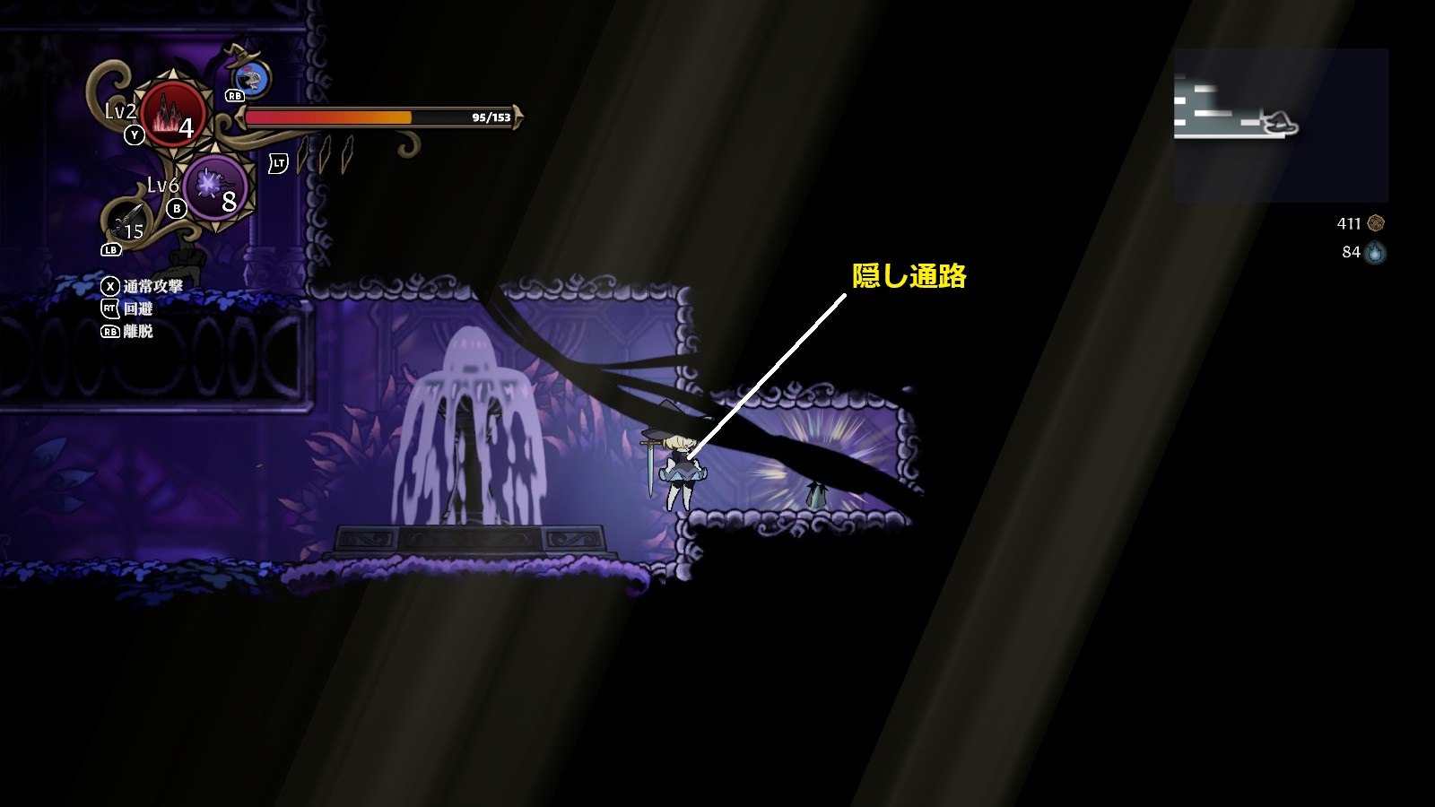 上下がトゲで囲まれた場所は1層の特殊な別ルートで、序盤の段階では進むことができない。