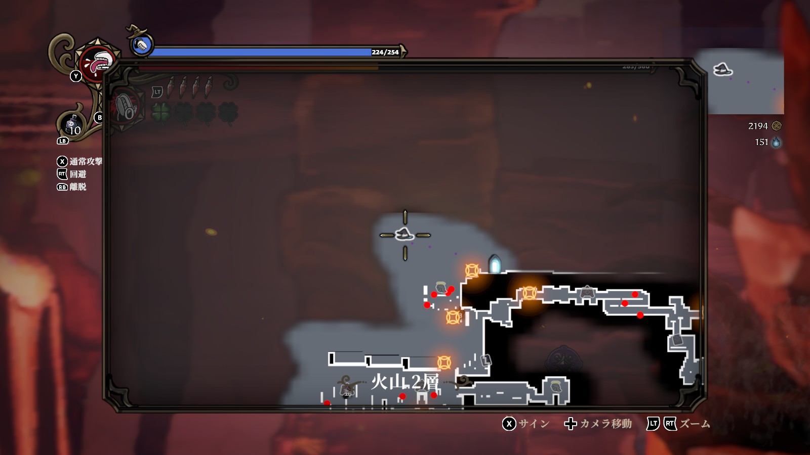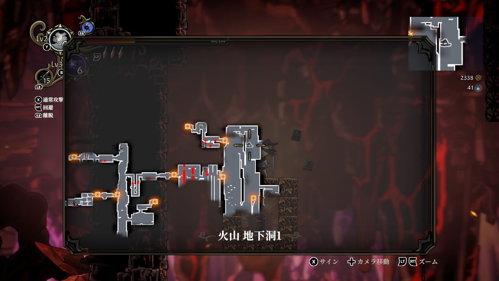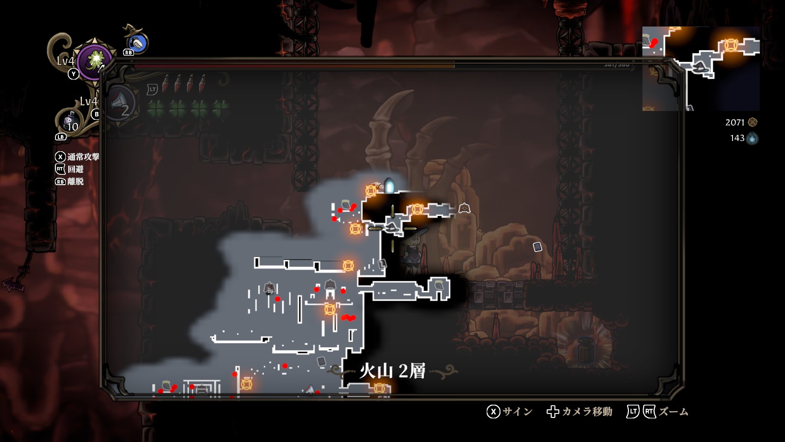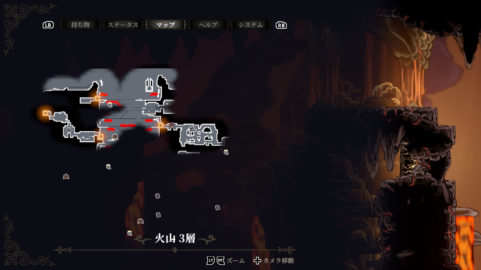 | 火山 2層 | 火山の山頂からボーンドッグに憑依した状態の通常攻撃を使って左上に進む ボーンドッグは2層内にもいるはず ※地図上の位置 | ![]() |