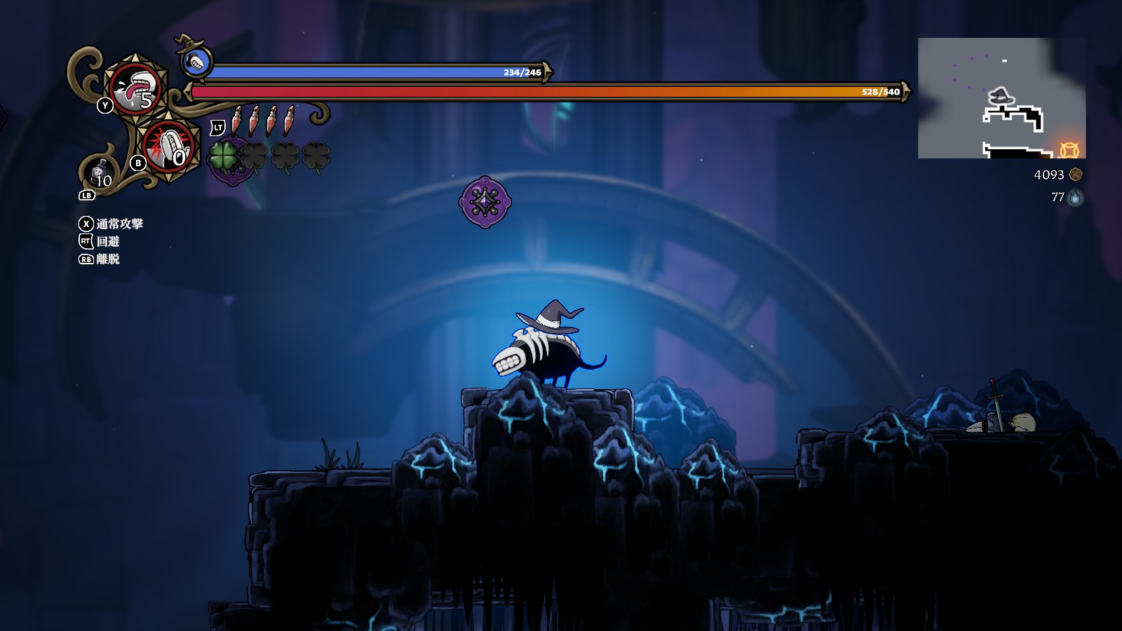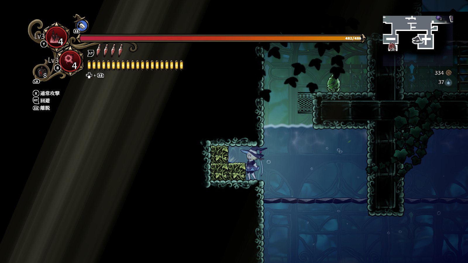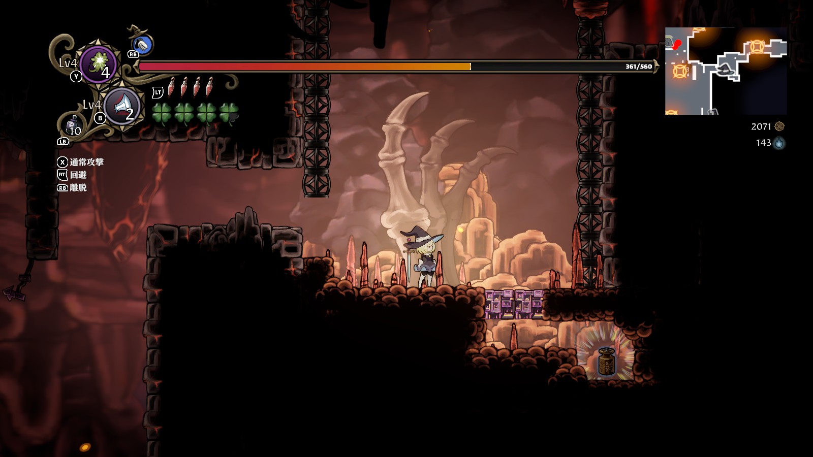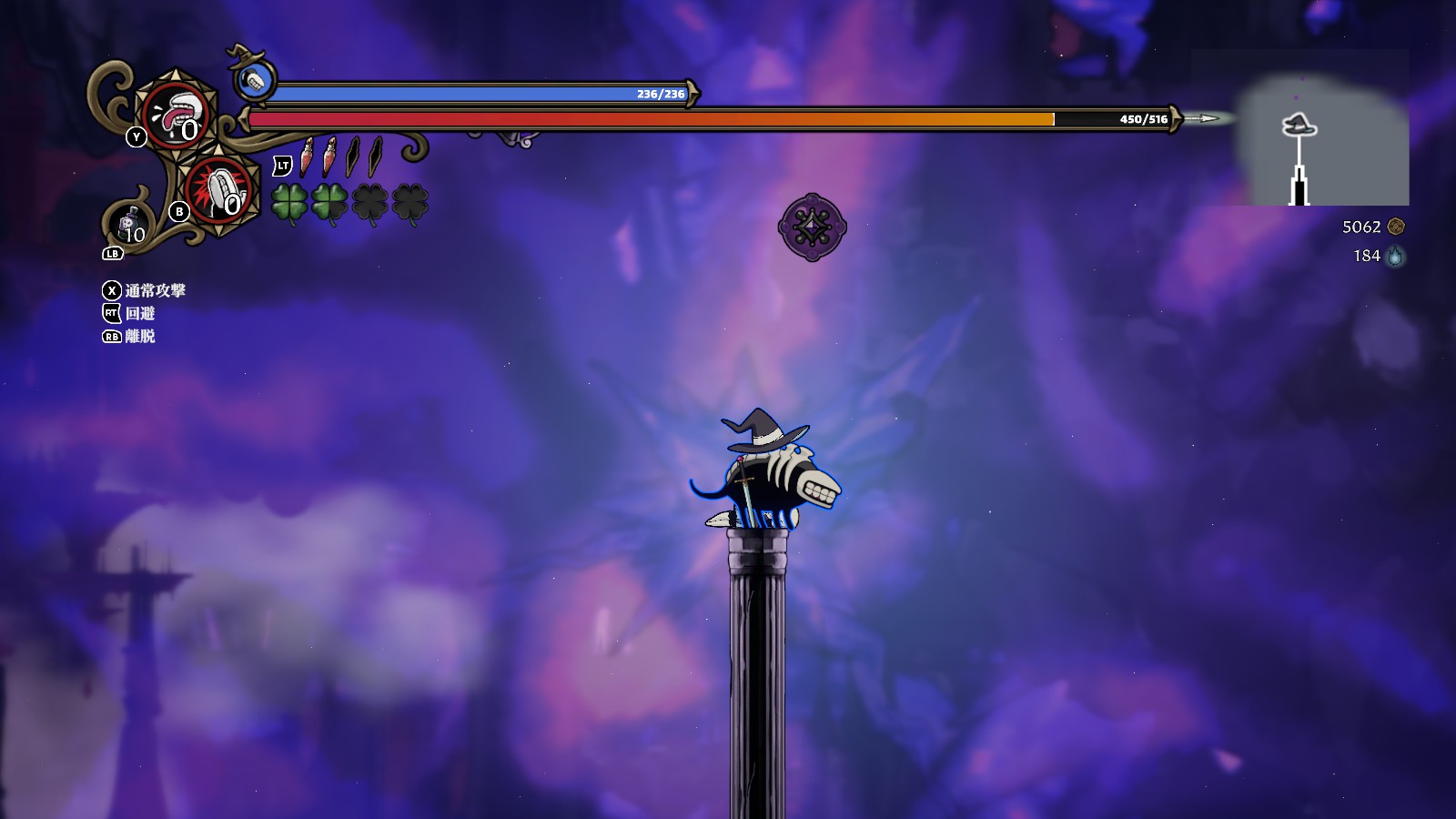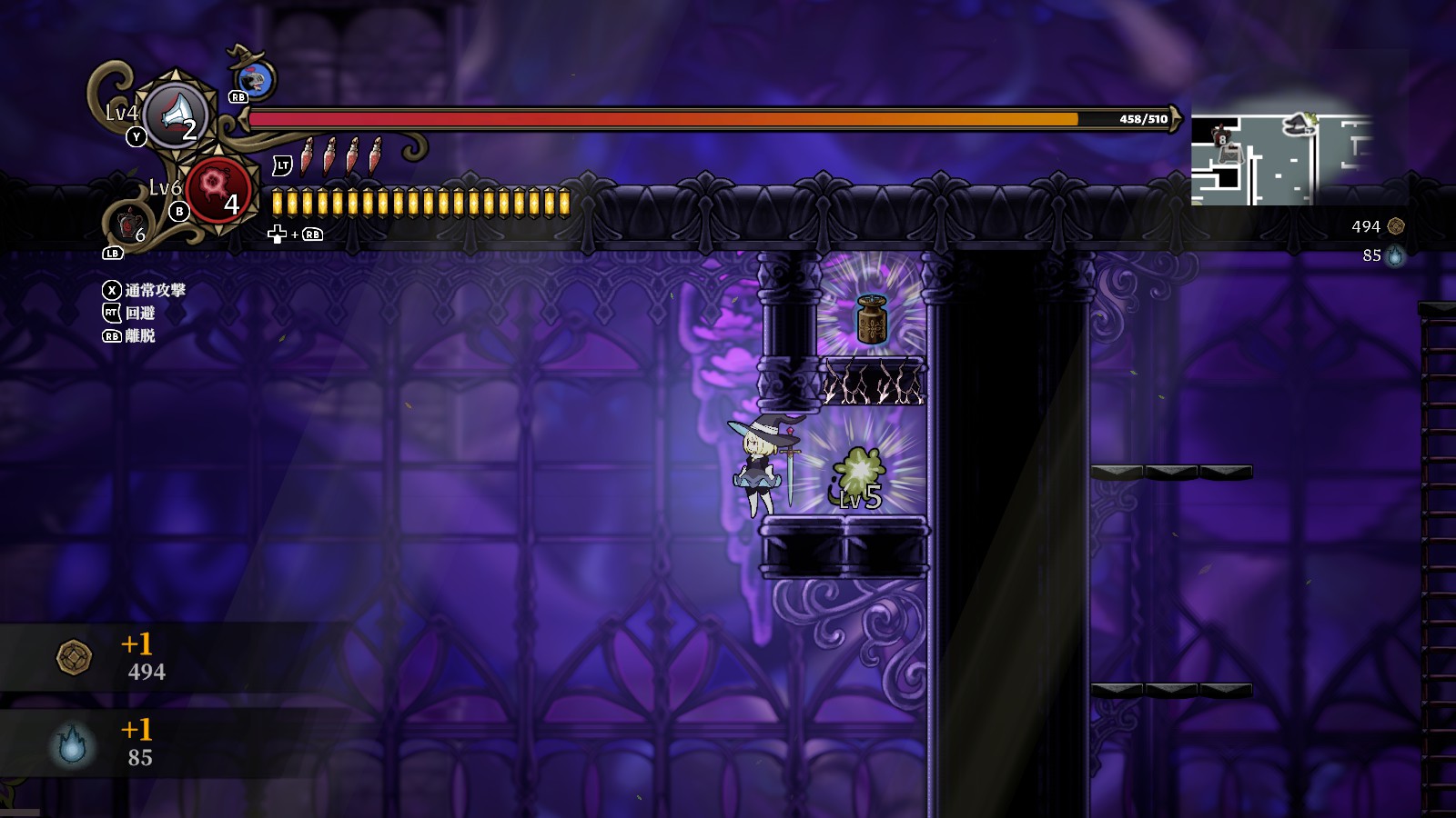 | 植物園 1層 | 捕獲檻でボーンドッグに憑依した状態で植物園に入り、1層の東端の上部に登る。 そこでボーンドッグに憑依して左にジャンプし、紫のギミックを攻撃しながら左の足場まで移動する ※地図上の位置 | ![]() |