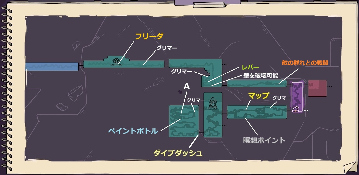 今後はペイントスタブとダイブダッシュを組み合わせないと進めないエリアが増えていく。